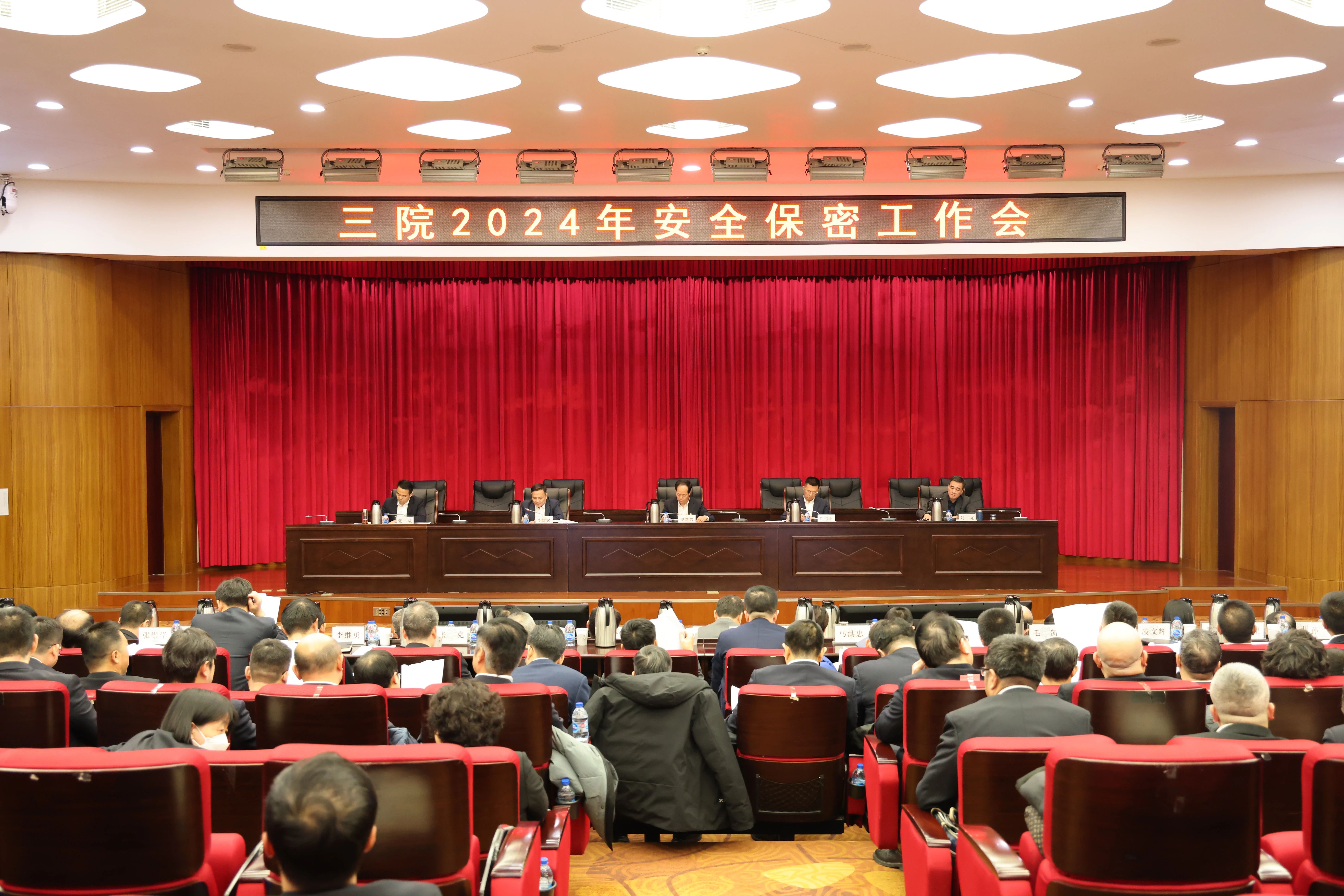 会上,传达了全国安全生产电视电话会议精神;作题为《认清新形势 落实新要求 以高水平安全保障高质量发展》的安全保密工作报告;宣读了三院2023年度安全生产、保密、保卫工作先进表彰的决定;通报了三院2023年《安全责任书》完成情况,并对2024年《安全保密责任书》进行简要说明。