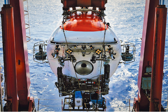 图为2024年9月11日,“蛟龙”号载人潜水器在维嘉海山完成2024西太平洋国际航次科考最后一个潜次下潜作业。作为我国自主研发的7000米级载人潜水器,“蛟龙”号是我国认识深海和经略深海的国之重器。 新华社记者 王聿昊/摄
