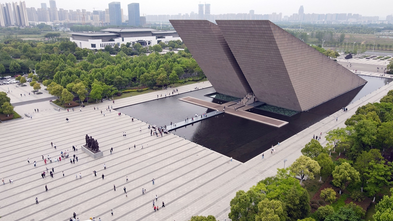 游客在合肥渡江战役纪念馆参观游览(2021年5月3日,无人机照片)。新华社记者 周牧 摄