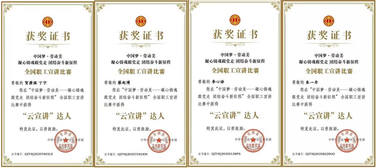 三院五名职工获评全国职工宣讲比赛“云宣讲”达人称号
