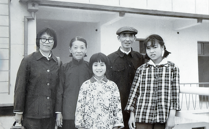 图为樊万琴(左一)一家刚来红峰厂时的合影